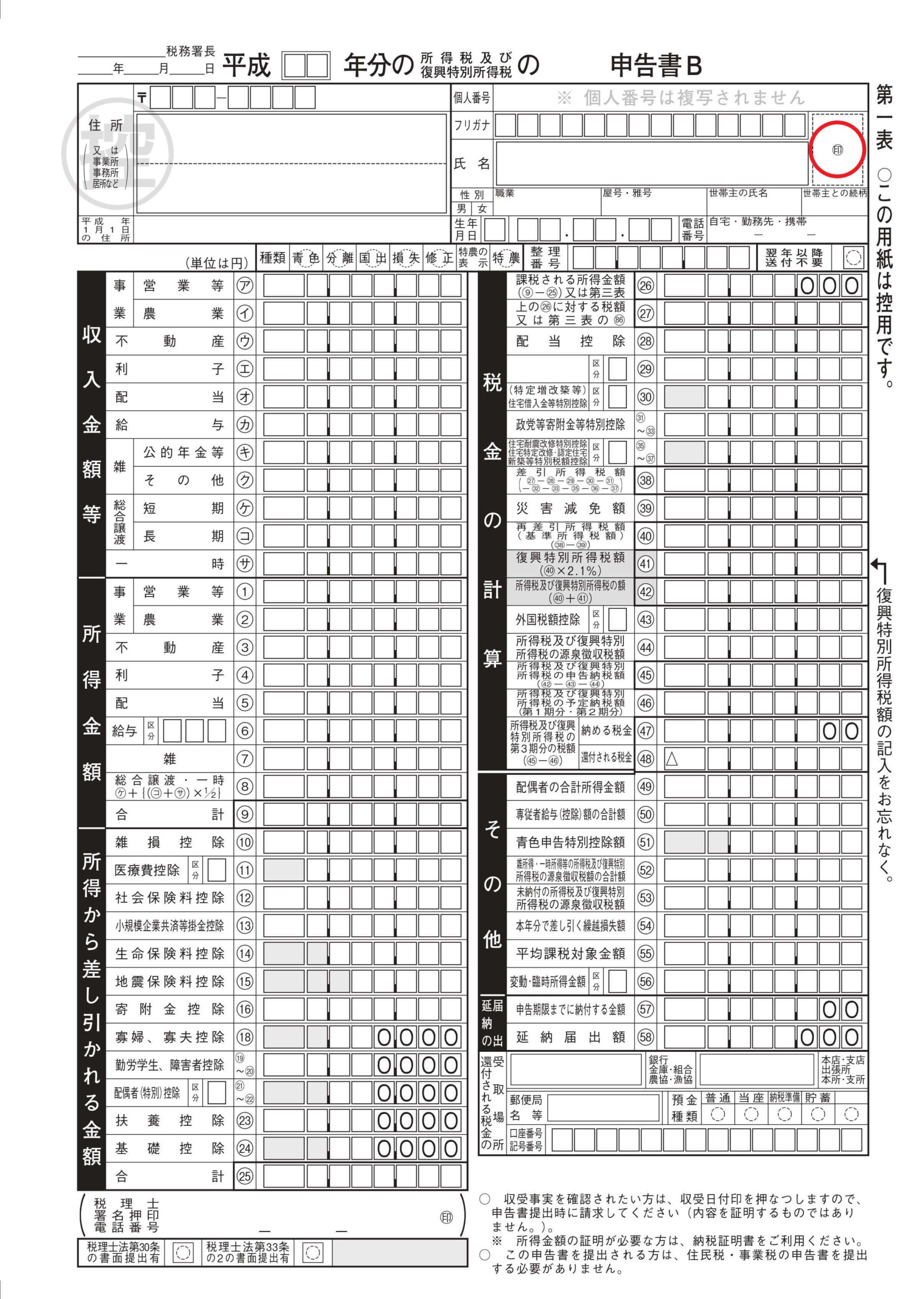 確定申告書B