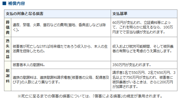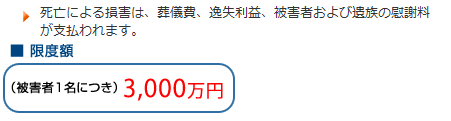 2.支払限度額は、被害者1名ごとに定められています。1つの事故で複数の被害者がいる場合でも、被害者1名あたりの支払限度額が減らされることはありません。